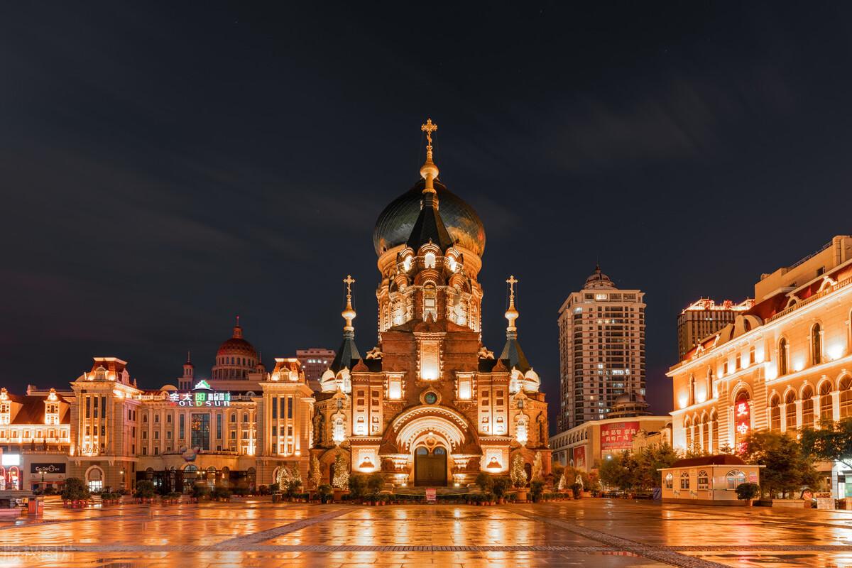 圣索菲亚大教堂是哈尔滨的著名地标,也是中国目前保存最完整的拜占庭式建筑。可以在外面拍照打卡,也可以进入内部参观(需要购买门票),绿色的洋葱头式大穹顶十分醒目,满满的异域风情。